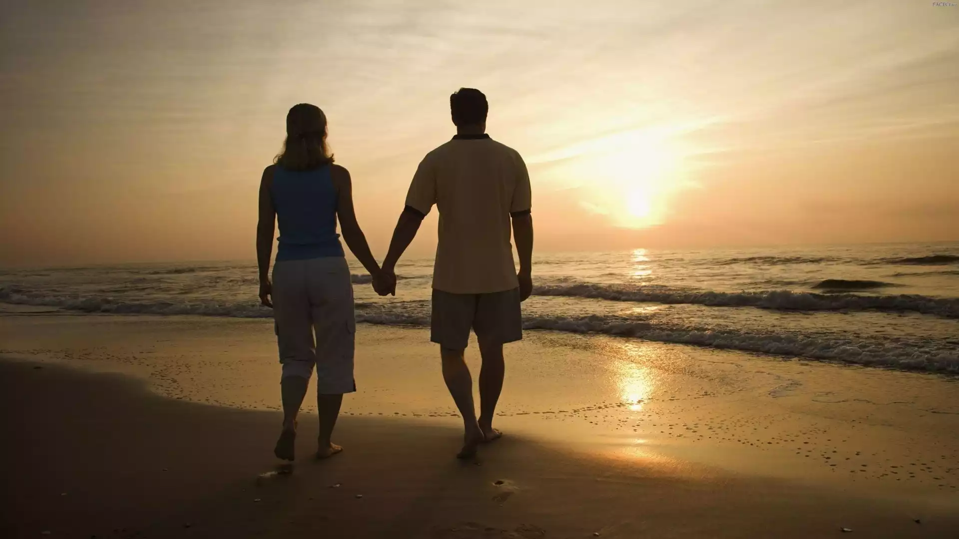 Morzem, Para, Słońca, Zachód, Nad, Plaża - faceci.biz